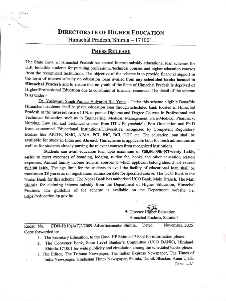 - Dr. Y.S. PARMAR Vidyarthi Rin yojna.